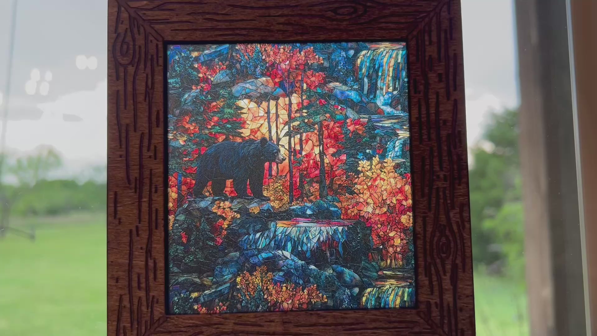 Bear in the Wilderness Suncatcher - Handmade Rustic Decor, 6" Wood & Acrylic