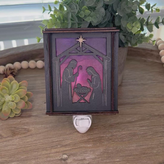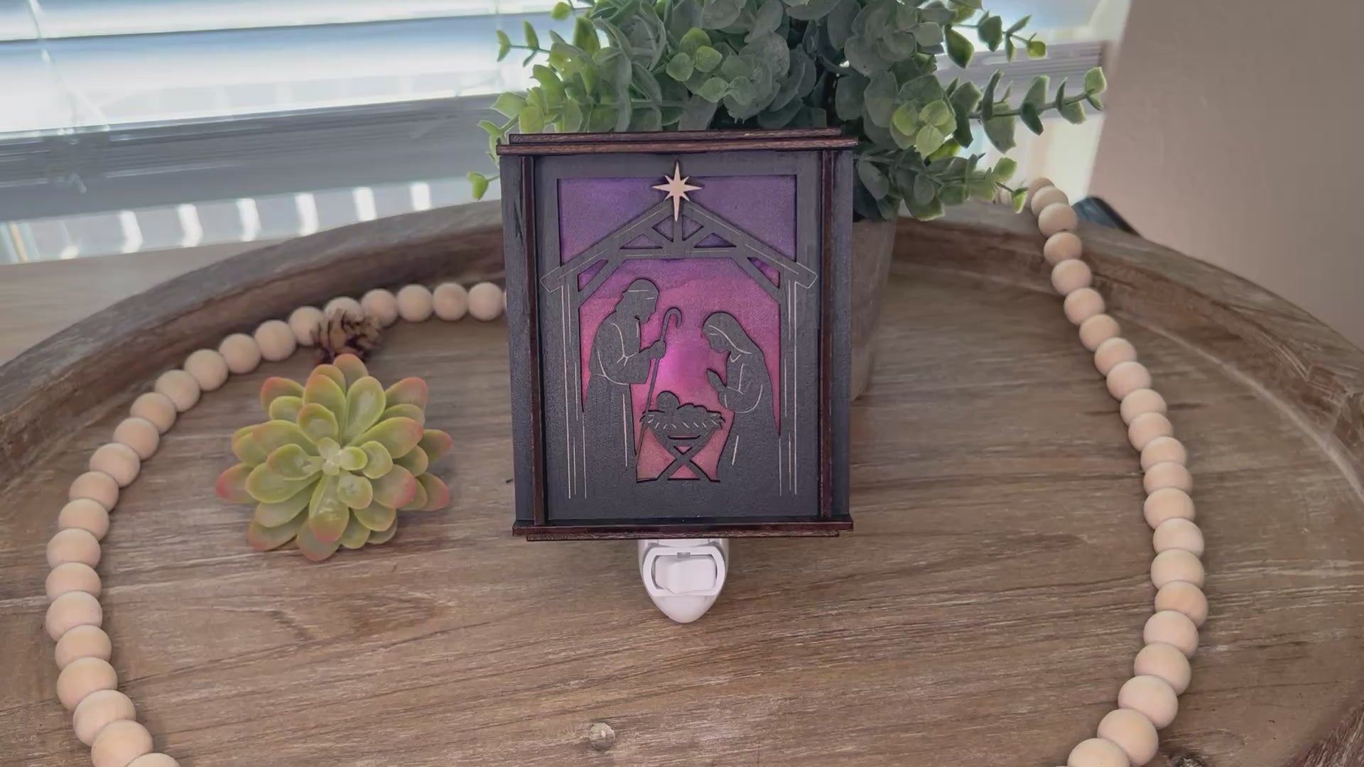 Christmas Nativity Lantern Nightlight - Black Wood & Acrylic