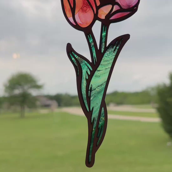 Take a look at our Pink and Coral Flowers with Stems Suncatcher. This rustic modern decor masterpiece brings an enchanting touch of nature indoors, creating a symphony of colors that dance with sunlight. Crafted for those who cherish unique and handmade treasures, this suncatcher is more than just a piece of decor—it's a celebration of art and beauty in your living space.