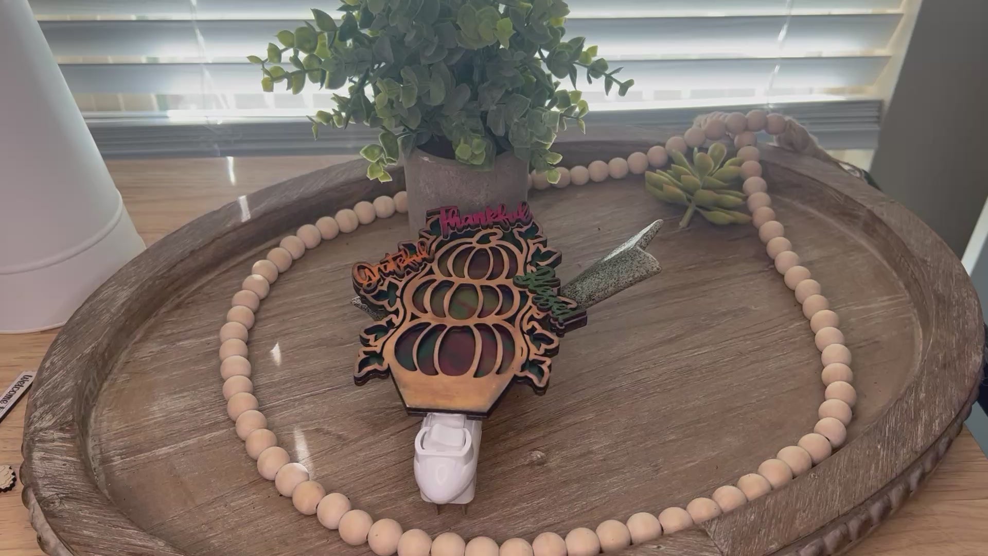 Each Thankful Grateful and Blessed Trio Pumpkin Nightlight is lovingly handcrafted, combining the natural beauty of wood with the brilliance of multicolored acrylic accents. The intricate details are a testament to skilled craftsmanship, ensuring that every piece is unique.