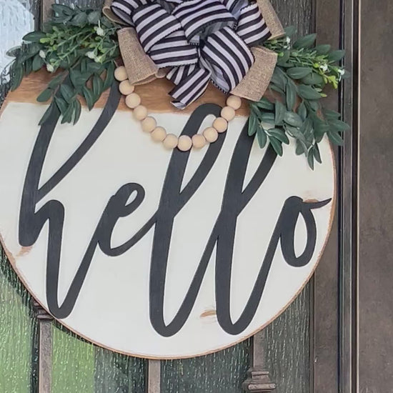 White Hello Door Hanger - Rustic Wood Sign for Entryway
