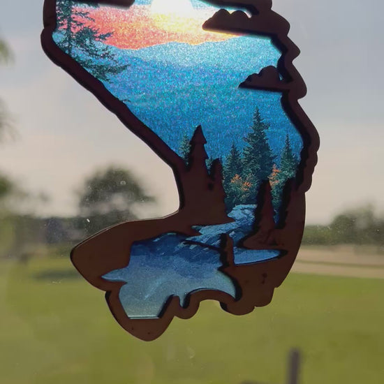 This handcrafted suncatcher makes for a thoughtful and unique gift for birthdays, holidays, or any special occasion. Its versatile design allows it to be displayed in various settings, from cars to windows to porches. Give the gift of rustic charm and natural allure with this Bass Suncatcher, and watch as its beauty brightens up any space.