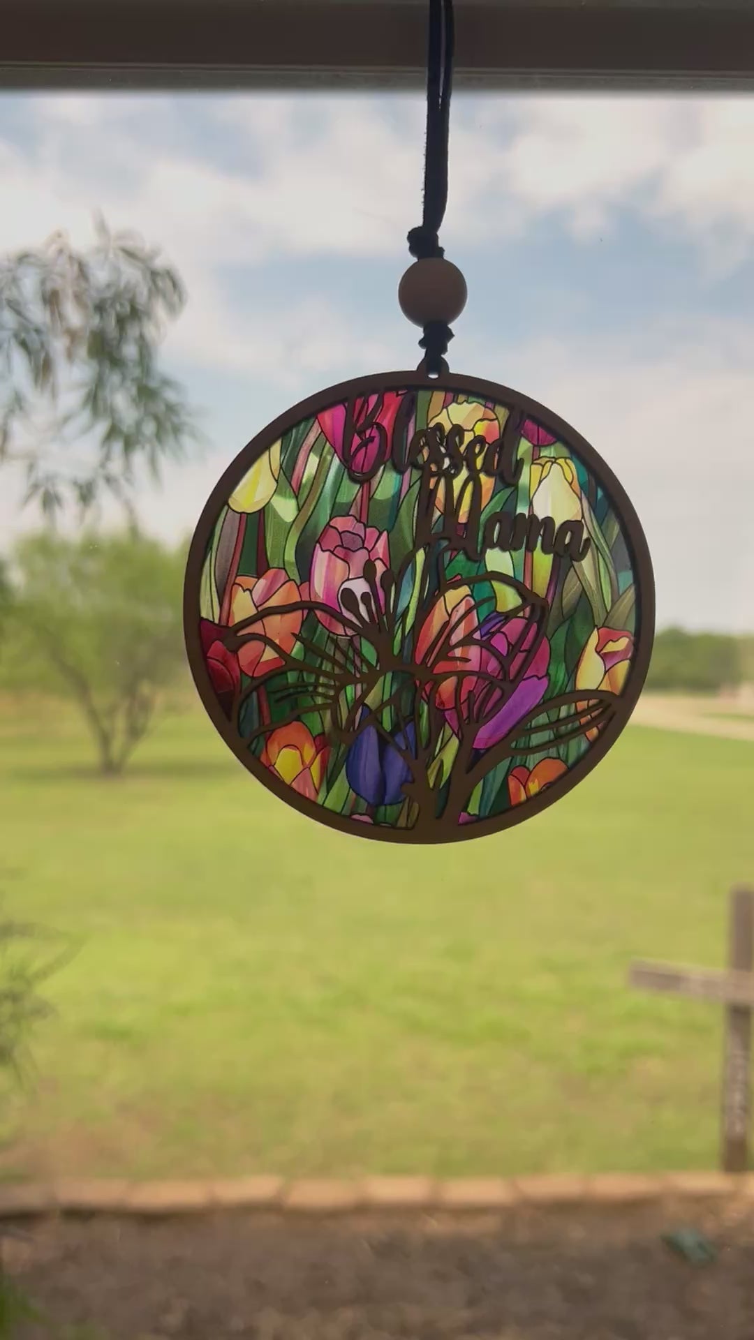 Each Blessed Mama Suncatcher is meticulously handcrafted, combining the natural beauty of wood with the luminous quality of acrylic to achieve its signature stained glass decor effect. The use of premium materials ensures that every piece is unique, with slight variations that add to its charm and authenticity. Perfectly sized at 4.375", this suncatcher fits seamlessly into any space, from window sills to garden patios, infusing them with a rustic-modern flair.