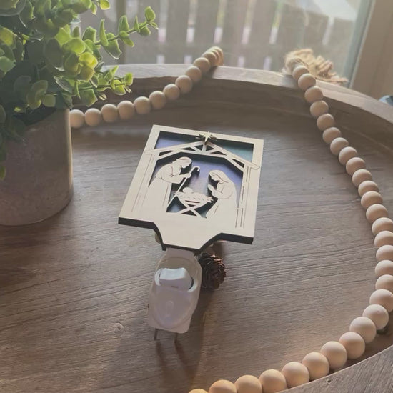 Add an enchanting glow to your home with our Christmas Nativity Nightlight, a perfect blend of rustic charm and modern elegance. This handcrafted piece is designed to bring warmth and serenity to any room, celebrating the timeless story of the nativity in a contemporary, artful way. As a festive nightlight, it casts a gentle, soothing light, creating a cozy atmosphere perfect for the holiday season.