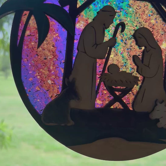Nativity Suncatcher - Rustic Christmas Window Art