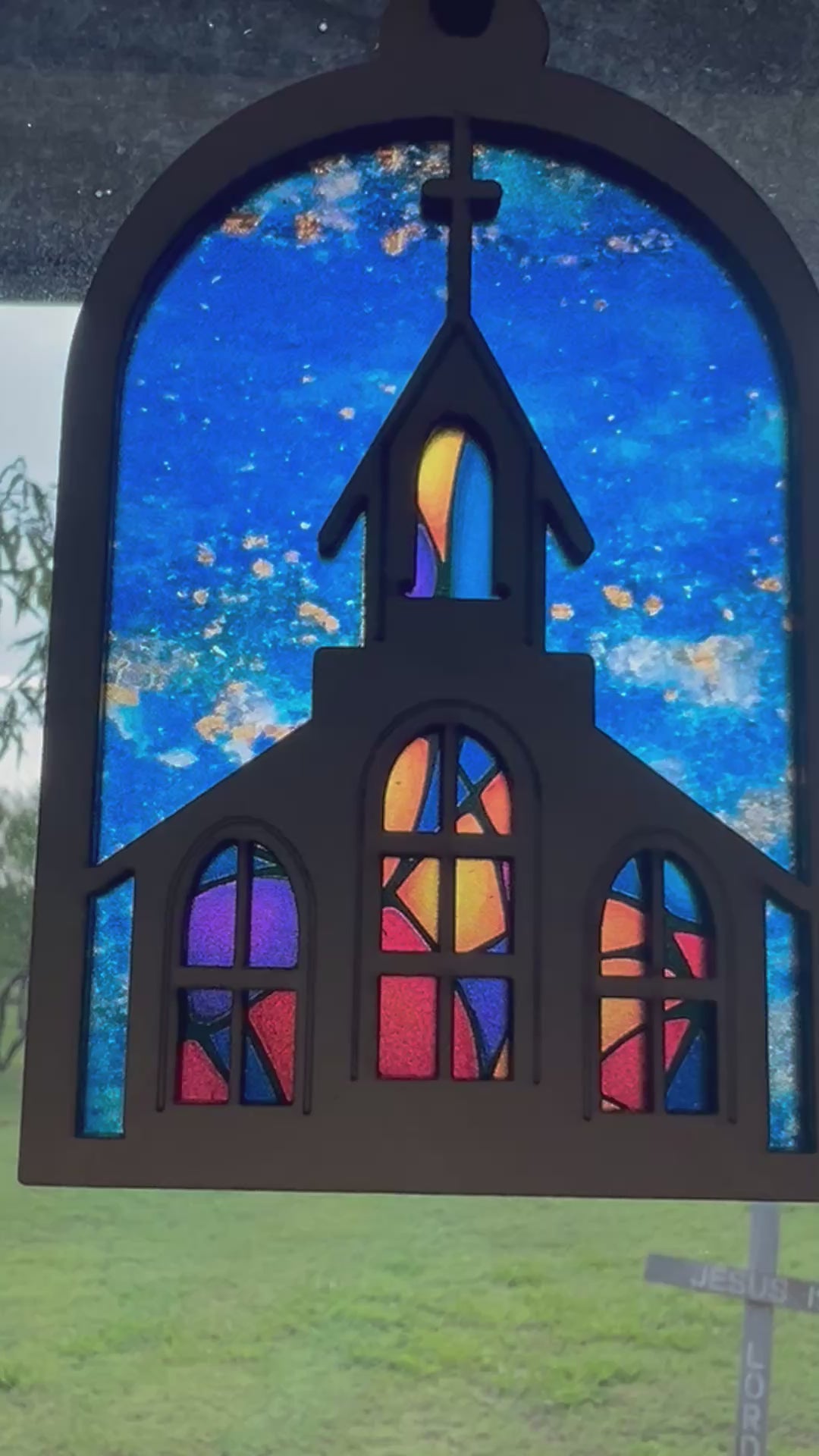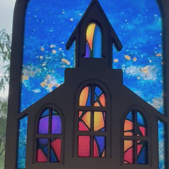 Church Suncatcher: Rustic Wood & Acrylic Stained Glass Art