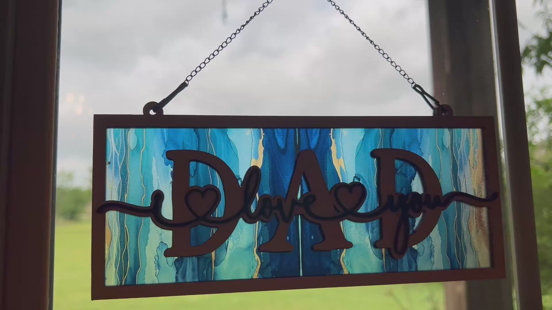 Celebrate the bond between you and your father with our heartfelt 'Dad I Love You Suncatcher'. This handmade wood decor piece is more than just a gift—it's a keepsake that captures the warmth and light of your relationship. Perfect for Father's Day or any special occasion, this stained glass look suncatcher will bring a rustic home accent to any space. As the multicolor hues dance across the room, it will remind your dad of the vibrant memories you share together.