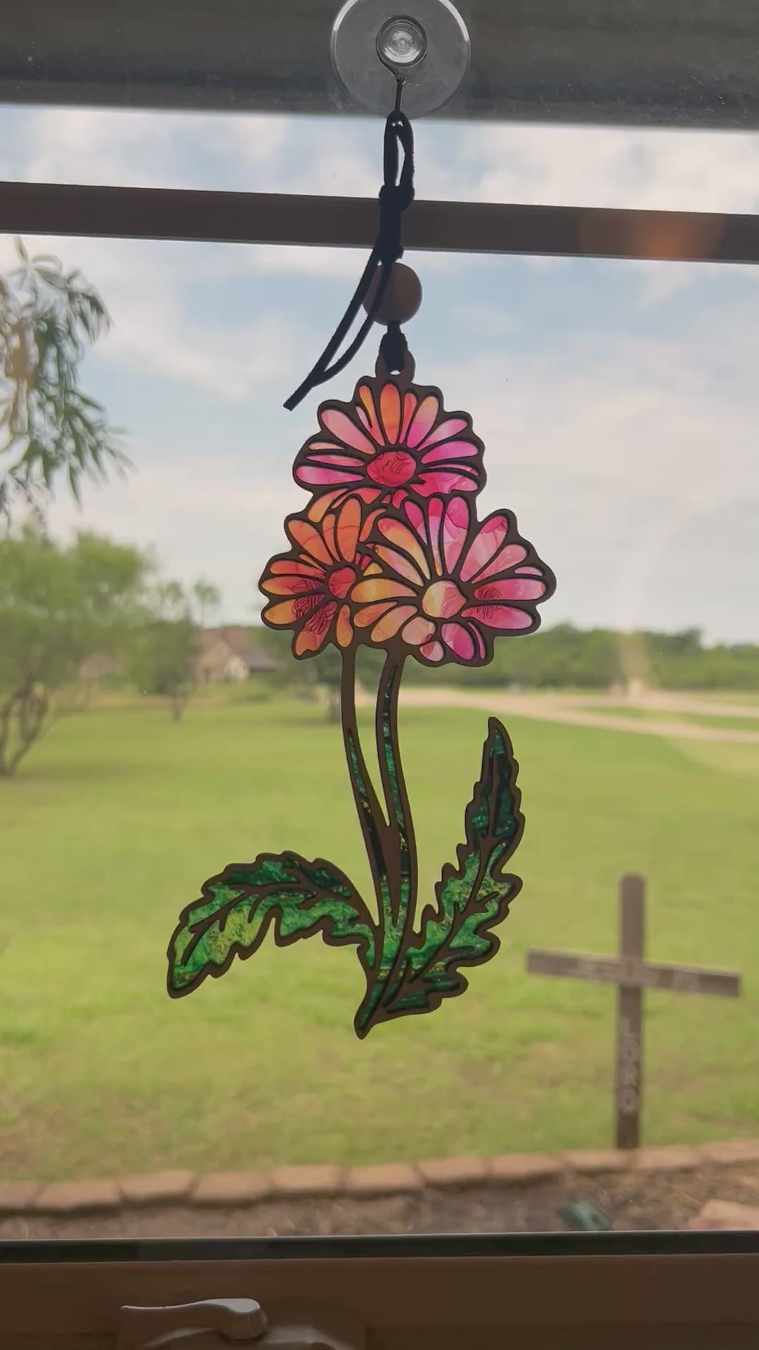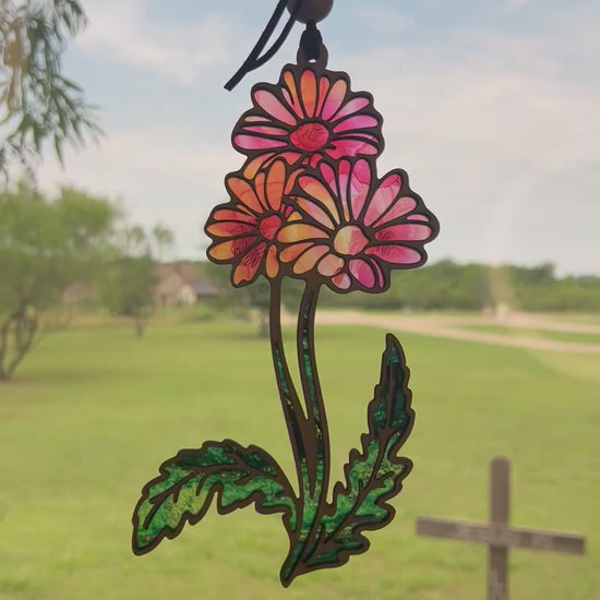 Our Daisy Flower with Stems Suncatcher is a perfect blend of rustic charm and modern elegance. Crafted with meticulous care, this multicolor suncatcher captures the essence of nature with its delicate daisy design. Whether you are a lover of unique handmade window decor or someone who cherishes the rustic, this piece is designed to bring warmth and vibrancy to any space. The stained glass effect, achieved with a harmonious mix of wood and acrylic, creates a captivating dance of colors as sunlight streams through, filling your home with a gentle, natural glow.