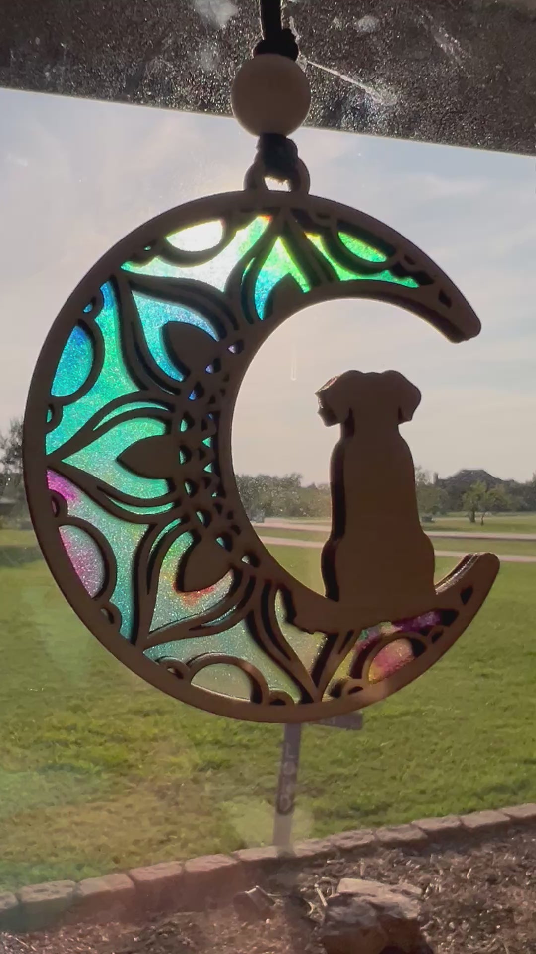 Dog on the Moon Suncatcher - Rustic Moon & Dog Art - Multicolor Decor