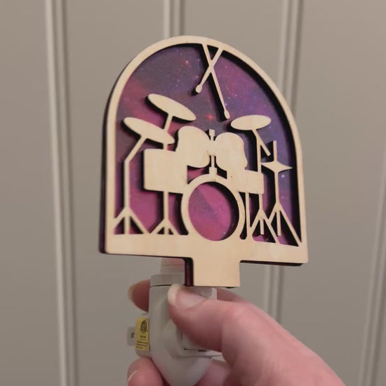 Drums Nightlight - Rustic Wood & Acrylic Stained Glass Effect