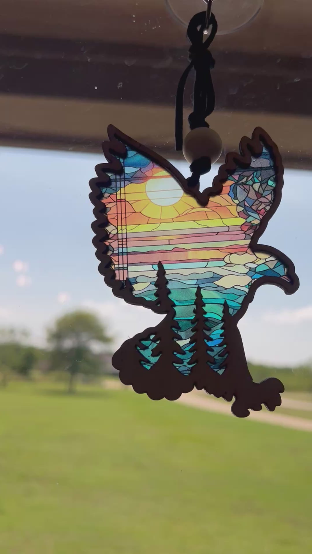 Our suncatcher is designed for nature lovers, art enthusiasts, and anyone who appreciates the beauty of handmade creations. Its rustic-modern aesthetic is perfect for those who want to add a touch of warmth and color to their home. With its stained glass decor effect, each suncatcher reflects vibrant hues that dance elegantly across your walls as sunlight pours through, creating a mesmerizing visual display. This piece is not only a decorative accent but an emotional journey that evokes the spirit of adventure and the beauty of nature.