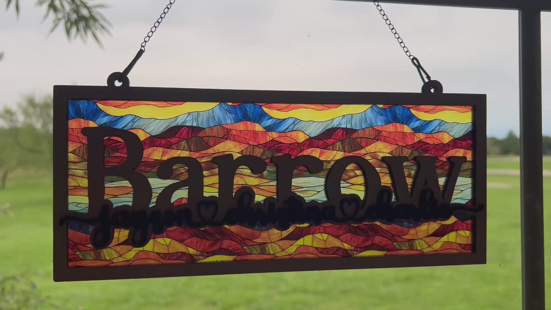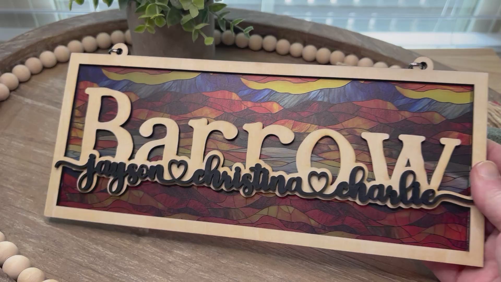 Designed with care and precision, our suncatcher features a harmonious blend of natural wood and vibrant acrylic, simulating the stunning stained glass effect without compromising the rustic appeal. Each piece is meticulously crafted, ensuring that no two are exactly alike—just like your family. It's a wonderful gift for anyone who values uniqueness and the beauty of handcrafted art. Imagine the delight on their faces as they see their family name beautifully incorporated into the design, making it truly their own.