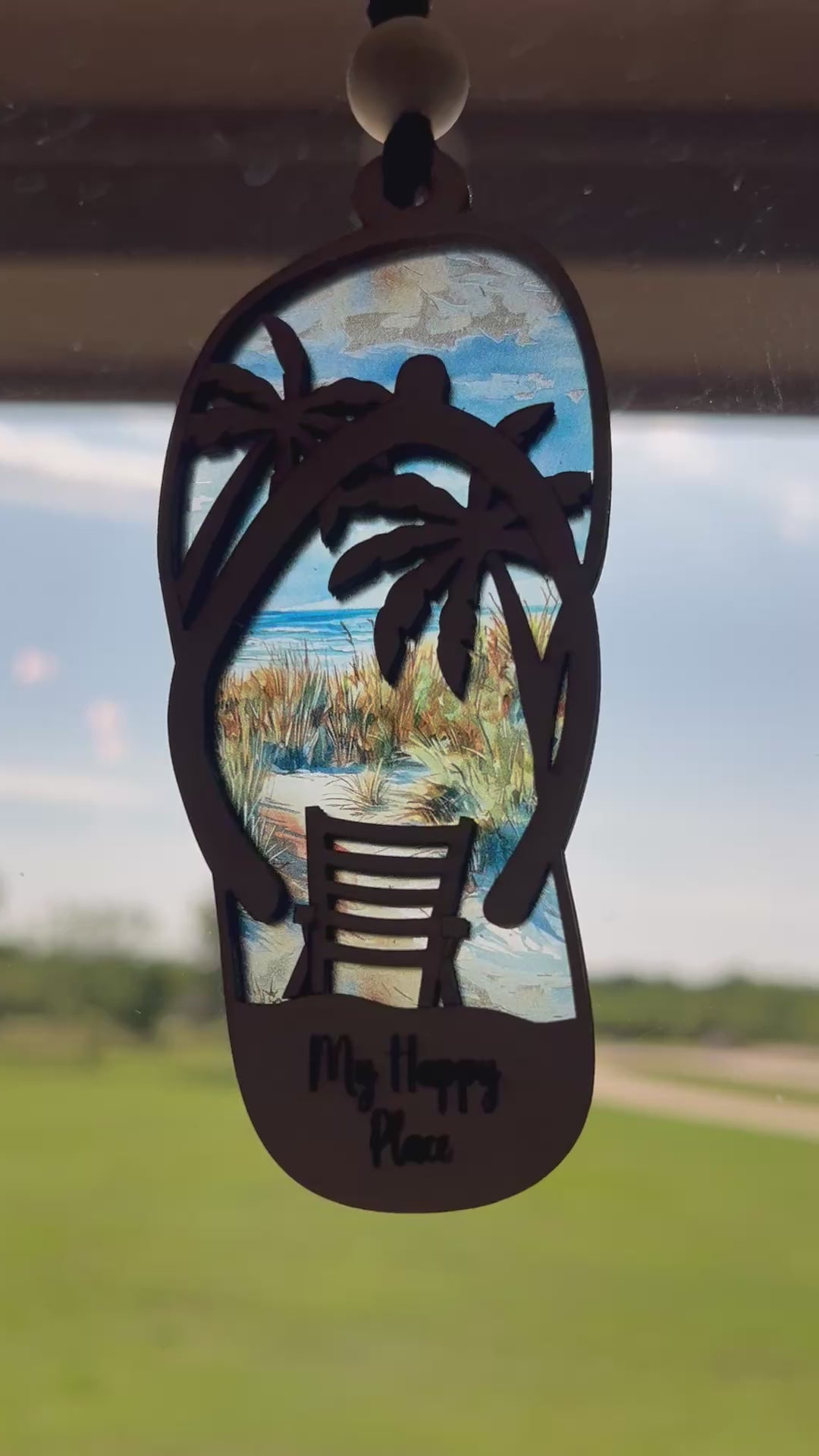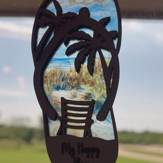 Our Flip Flop Beach Suncatcher stands out with its stained glass effect, achieved through the meticulous use of natural wood and multicolored acrylic. Each piece is a testament to the artistry and care that goes into creating a product that not only delights the eye but also warms the heart. Imagine the joy on a loved one's face as sunlight streams through this vibrant suncatcher, casting a kaleidoscope of colors across their home. It's more than just a decorative piece; it's a gateway to cherished memories and tranquil moments by the shore.