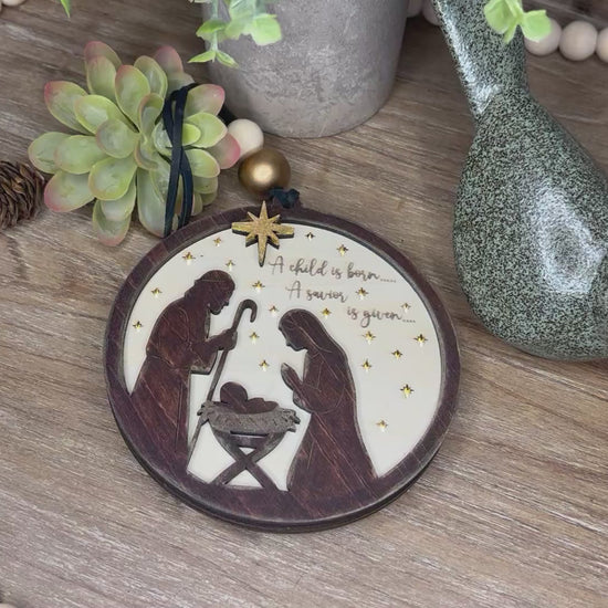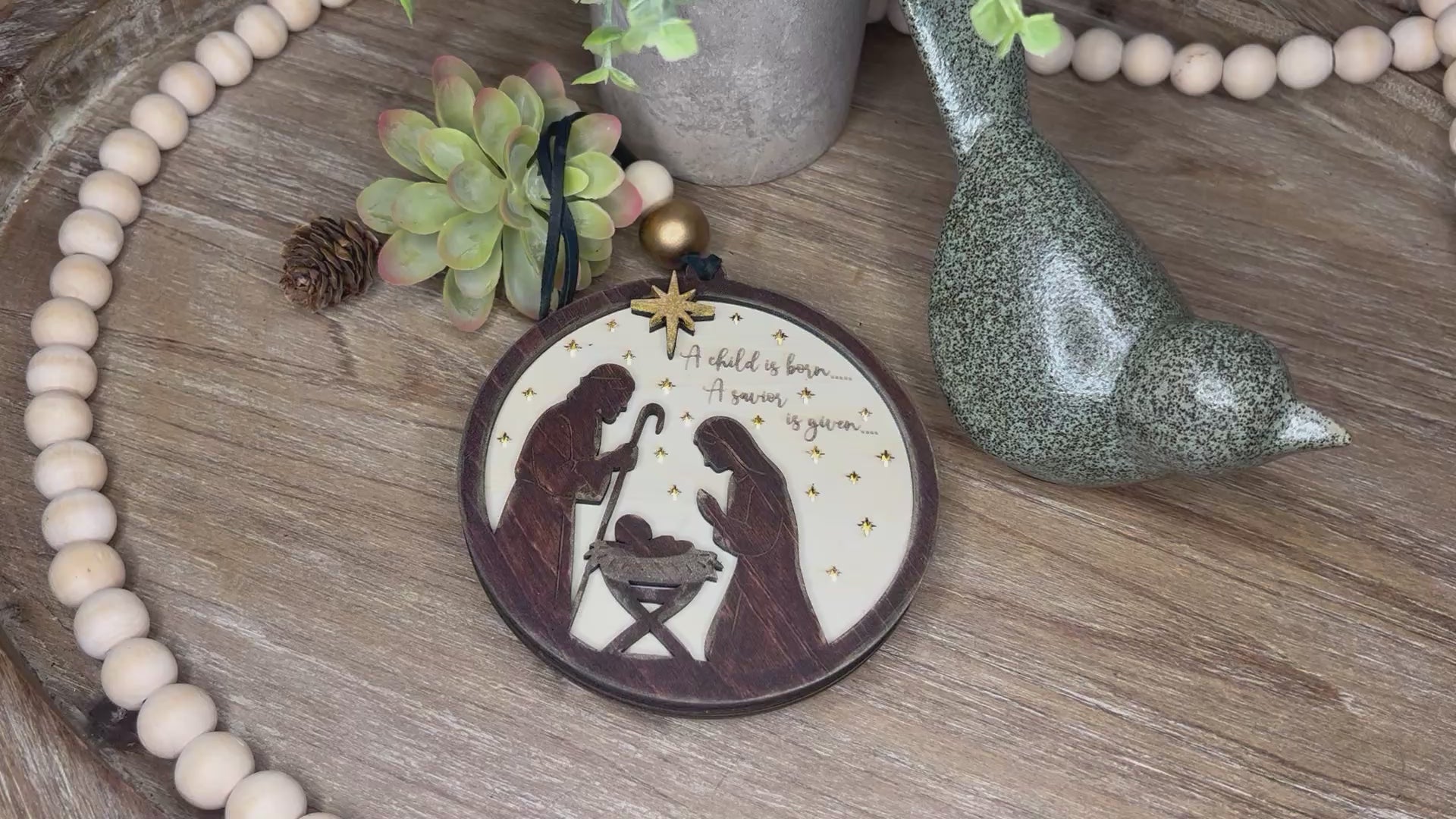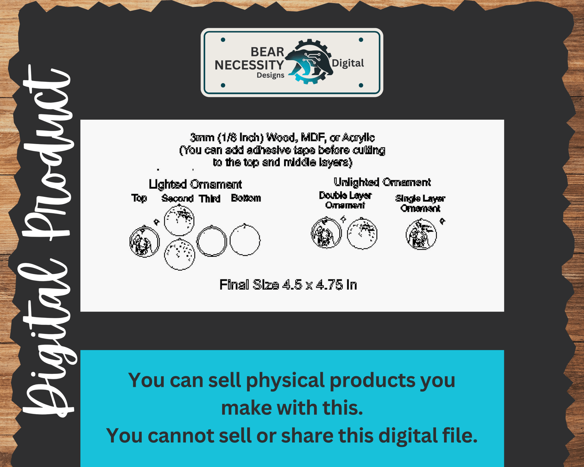 Lighted Nativity Ornament SVG – Layered Christmas Laser Cut File (Digital Download)