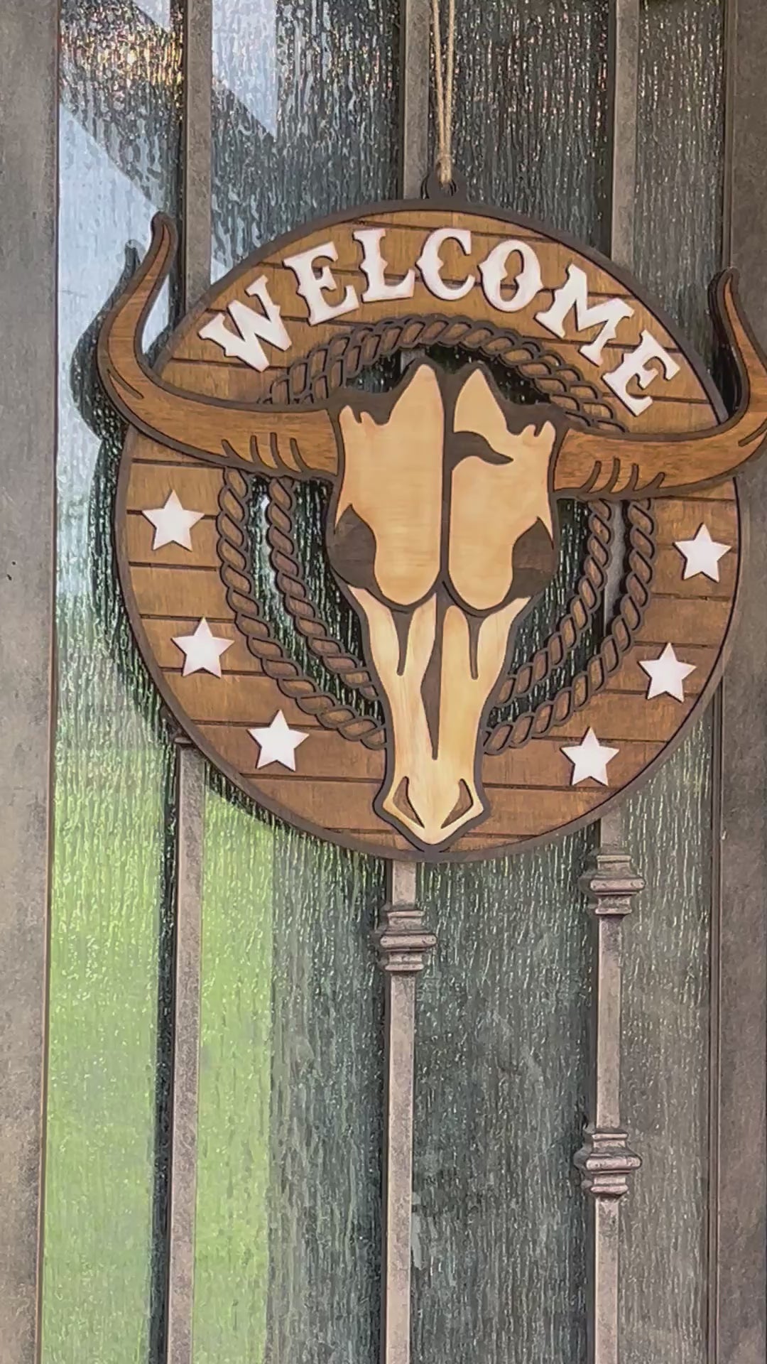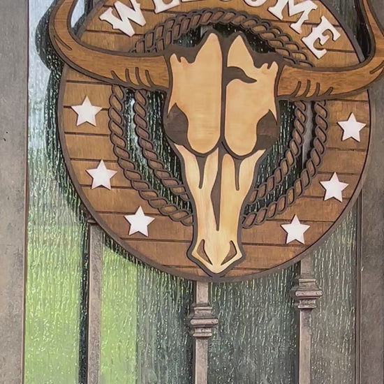 Longhorn Wood Welcome Door Hanger - Rustic Farmhouse Decor