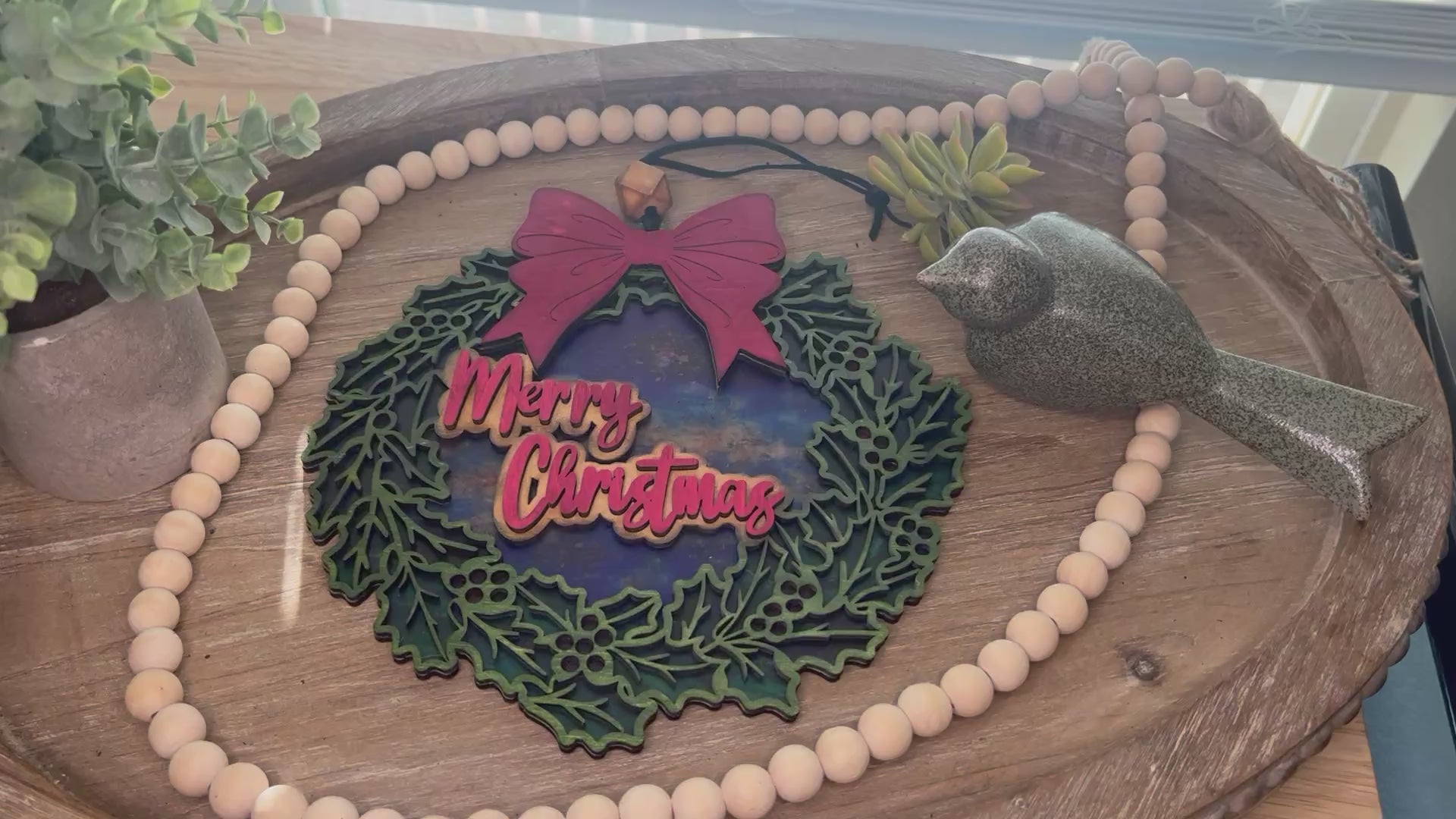 Merry Christmas Suncatcher - Rustic Wooden Holiday Decor