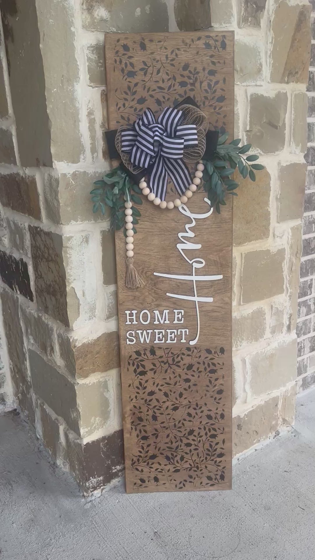 Each Mini Flower and Vine Home Sweet Home Door Lean is crafted with love and precision, using high-quality wood that promises durability and elegance. The natural wood is thoughtfully paired with a classic palette of black and white, making it versatile enough to complement any decor style.