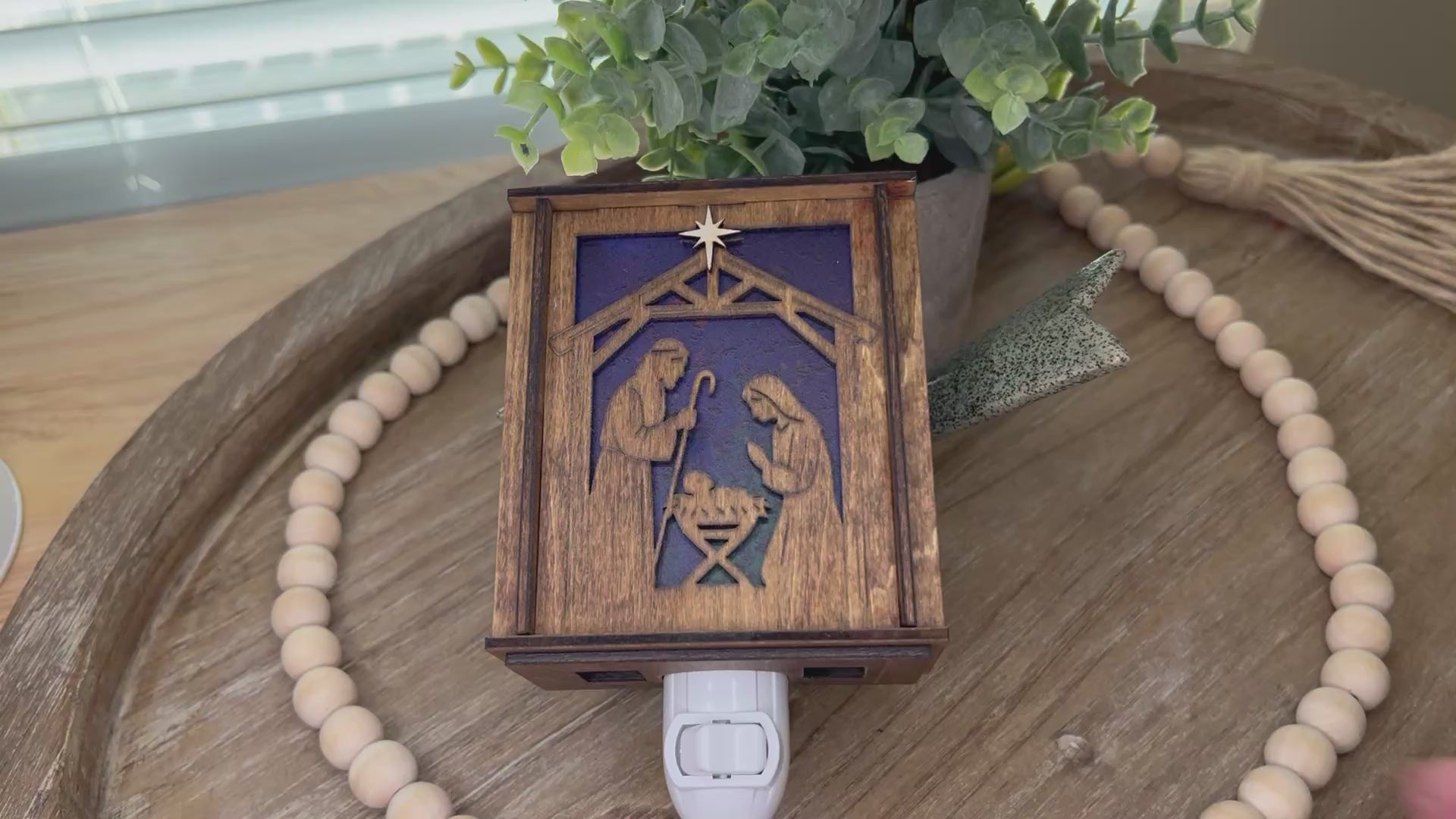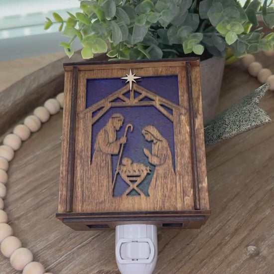 Nativity Nightlight Lantern - Golden Oak, Handmade Rustic Decor