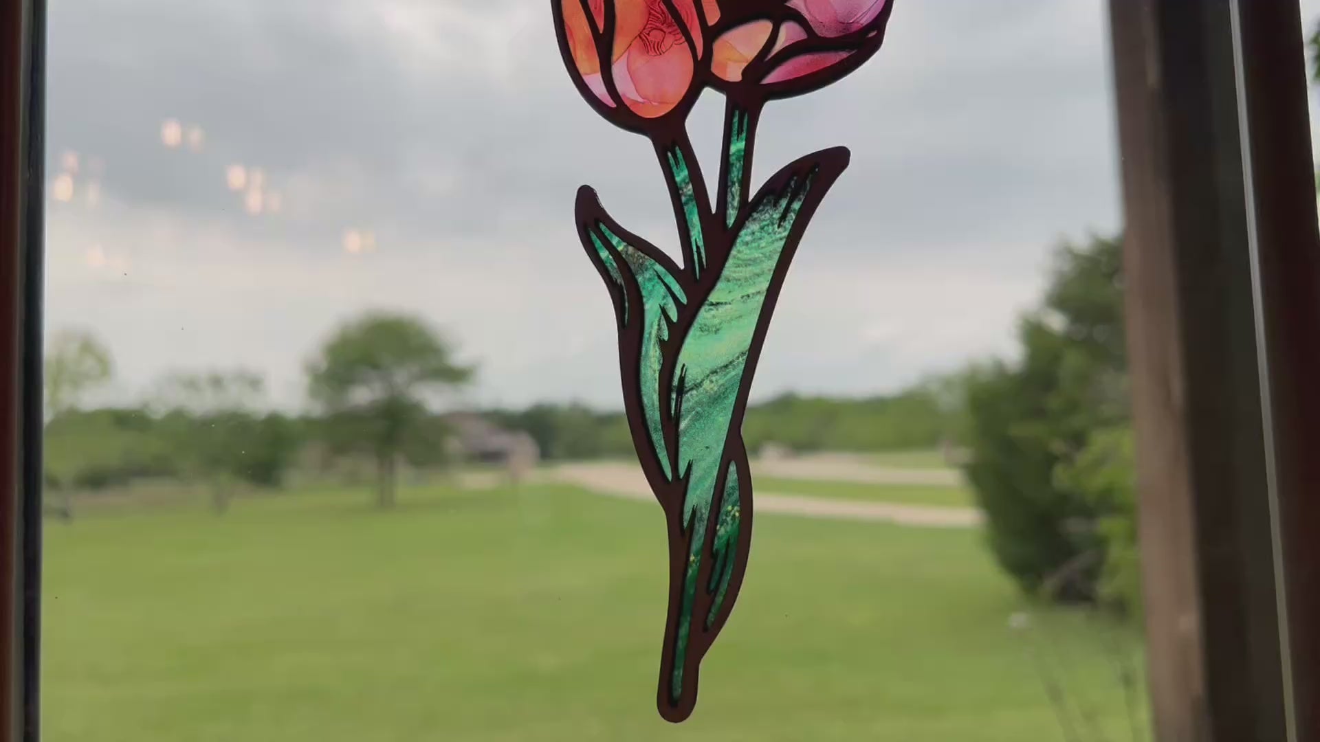 Take a look at our Pink and Coral Flowers with Stems Suncatcher. This rustic modern decor masterpiece brings an enchanting touch of nature indoors, creating a symphony of colors that dance with sunlight. Crafted for those who cherish unique and handmade treasures, this suncatcher is more than just a piece of decor—it's a celebration of art and beauty in your living space.
