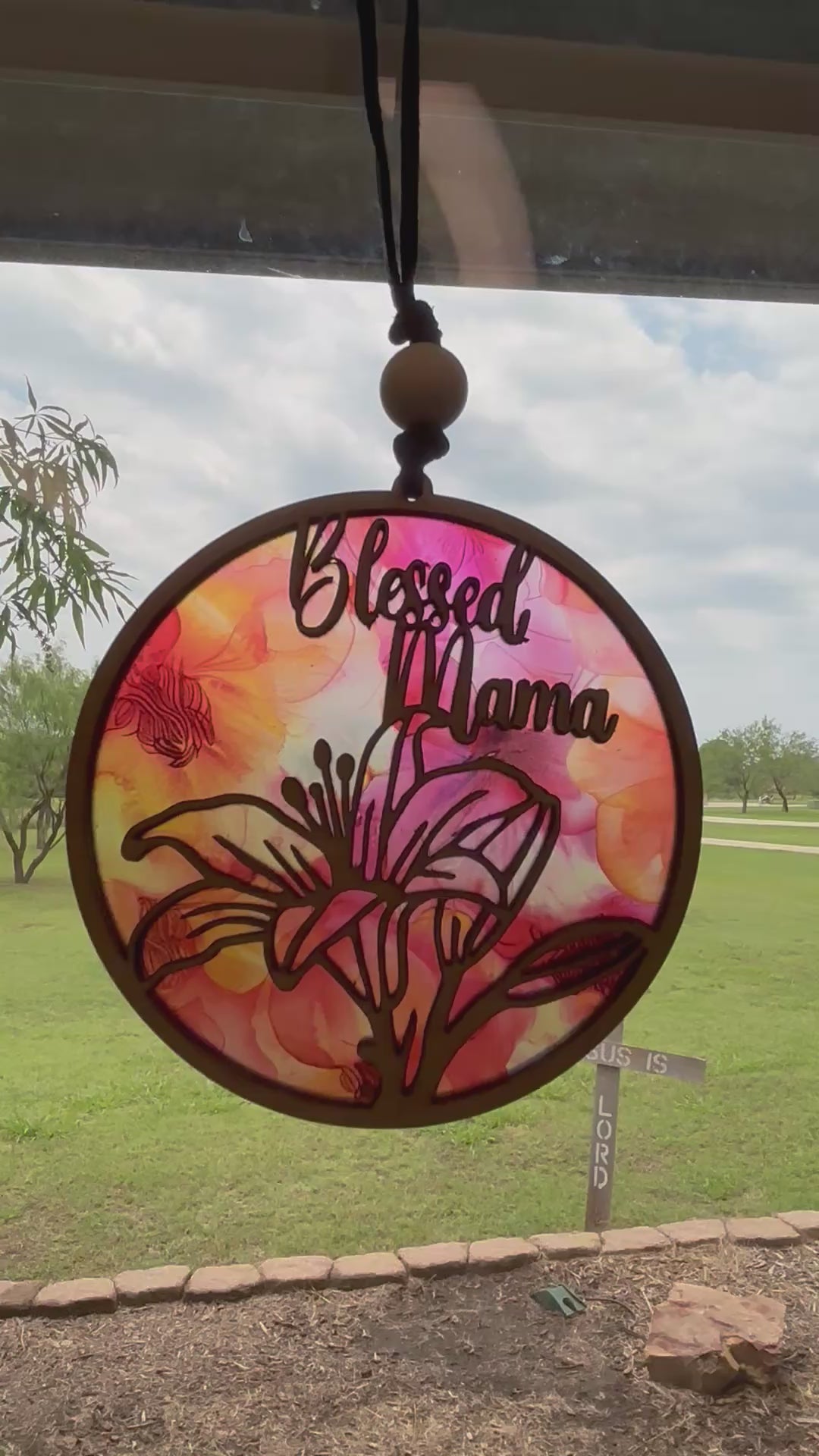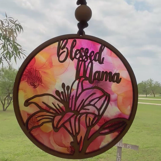 Pink & Coral Blessed Mama Suncatcher: Rustic Window Art Gift
