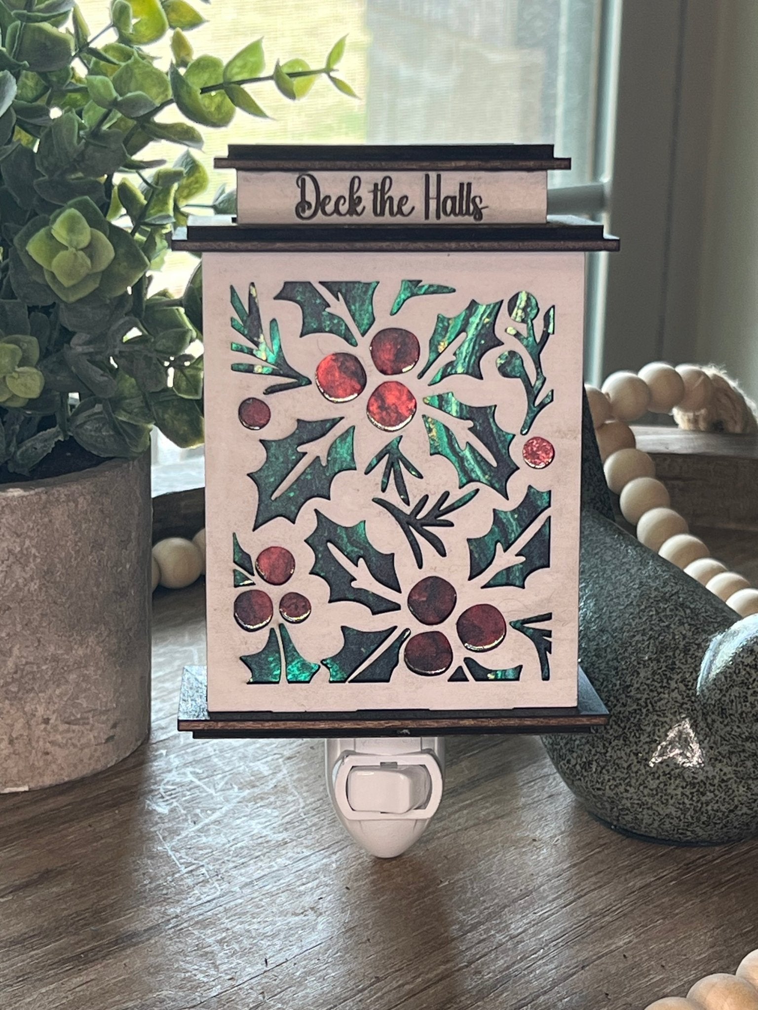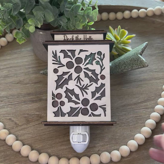This layered digital cut file is designed for laser cutting machines like Glowforge, xTool, OMTech, Epilog, and Thunder. Create a glowing lantern or plug-in nightlight featuring holly leaves and berries — perfect for handmade Christmas décor, gifts, or craft fair bestsellers.
