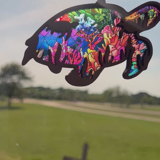 Sea Turtle Suncatcher - Rustic Stained Glass Effect, Multicolor Decor