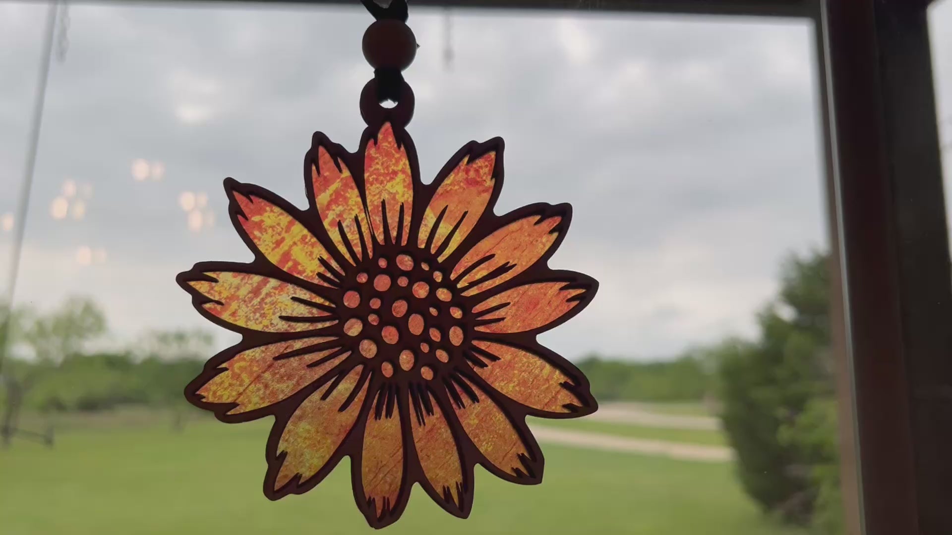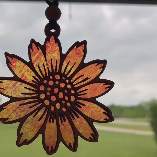 Sunflower Suncatcher - Walnut Stain, Wood & Acrylic, Rustic Charm