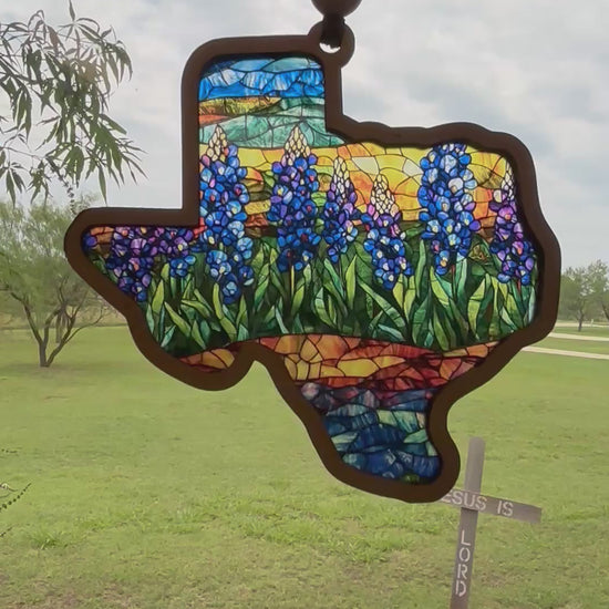 Texas Suncatcher: Rustic Wood & Acrylic Stained Glass Art