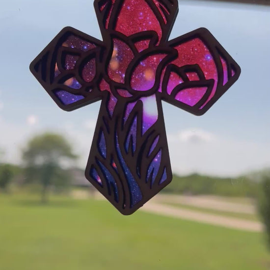 Embrace the enchanting beauty of spring with our Tulip Cross Suncatcher, a mesmerizing blend of rustic charm and modern design. Perfect for adding a touch of elegance to your living space, this stunning piece is not just a suncatcher; it's a heartfelt expression of nature's bounty. Made from a harmonious blend of natural wood and vibrant acrylic, it captures the essence of stained glass decor, casting a kaleidoscope of colors that dance playfully across your walls. Whether you're adorning a cozy nook or searching for the ideal handmade gifts for women, this suncatcher is a captivating addition to any home.